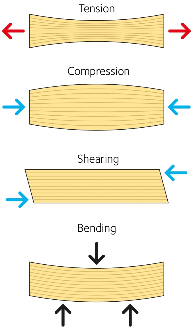The strength depends in part on the density of the wood and on how well the direction of the fibres matches the direction of the forces that arise when the wood is under stress.