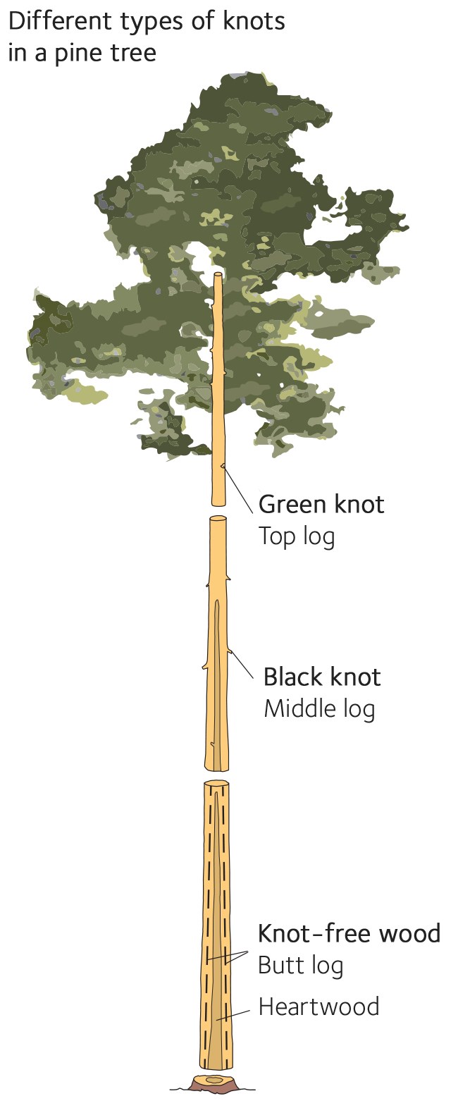 Material properties vary between the different wood species. Even within the same wood species, there are major variations between trees grown in different locations, but also between different trees grown in the same location. There is, however, even greater variation within a single tree; for example between different heights in the tree, between wood that is close to the pith and to the bark, and between springwood and summerwood in the individual growth rings. Knots and other fibre distortions (peculiarities) also affect the wood’s technical properties.