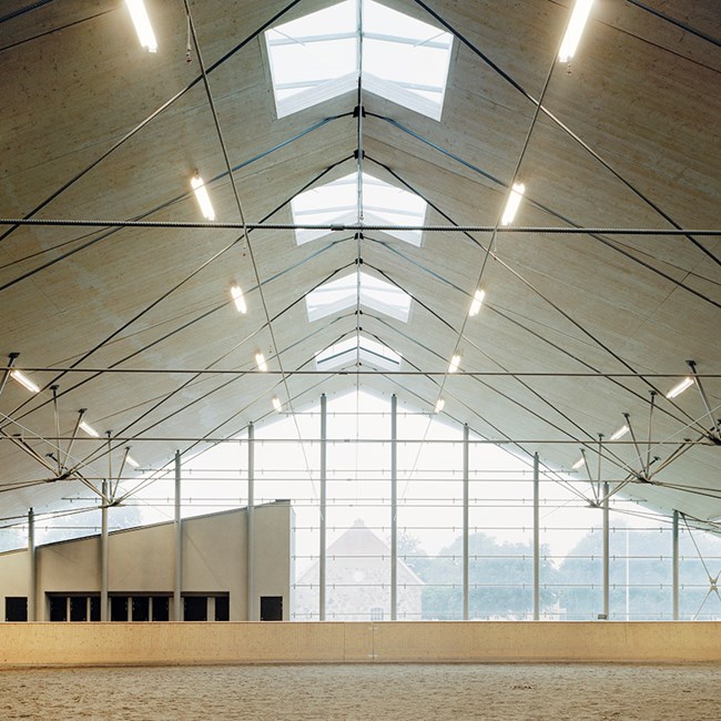 Nominated for the Swedish Wood Award in 2008, Flyinge Riding School is a fine example of how a large hangar-like structure can be erected in a historically sensitive setting and still add something to the landscape. The indoor arena, which is almost entirely made from wood, showcases innovative architecture influenced by local building traditions. Architect: AIX Arkitekter AB.