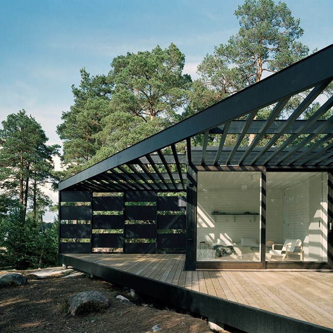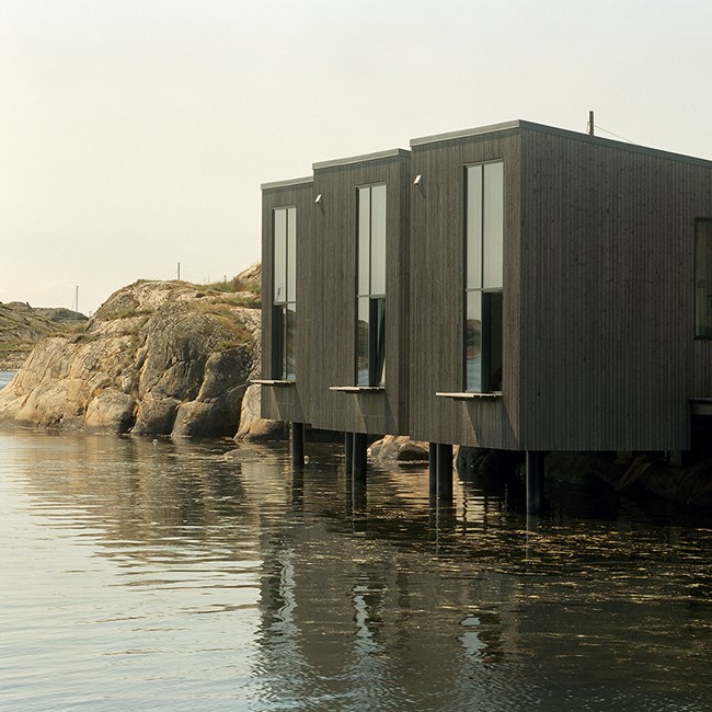 These studios sit at the water’s edge in Skärhamn, close to Gothenburg in Sweden, an idyllic spot in the Bohuslän archipelago. They show great respect for the site and were nominated for the Swedish Wood Award in 2004.