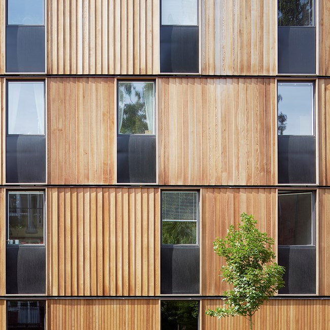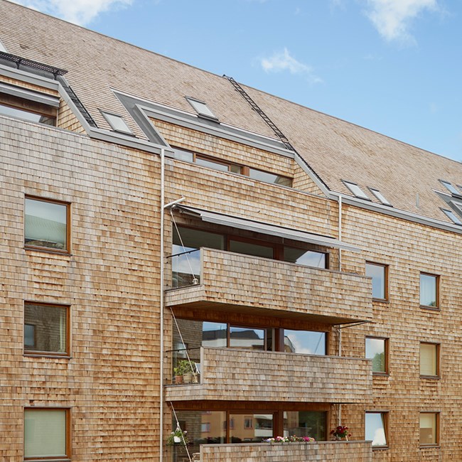 Nominated for the Swedish Wood Award 2016 and Swedens capital Stockholm’s Building of the Year in 2016. In Årsta, south of Stockholm, Skagershuset has garnered a great deal of praise for its architectural qualities, which originate from a smart collaboration between the architect and the supplier of this industrially built wooden apartment block.