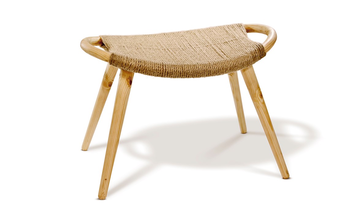 It is a stool for people to sit and calm down after intense work in the big city. It is made of Swedish pine with fabrics and a upholstered mattress.