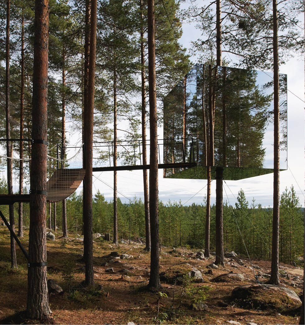 Treehotel, Mirrorcube, Harads, Boden, nominated for the Swedish Timber Prize 2012. Architect: Tham & Videgård Arkitekter. Photo: Åke E:son Lindman.