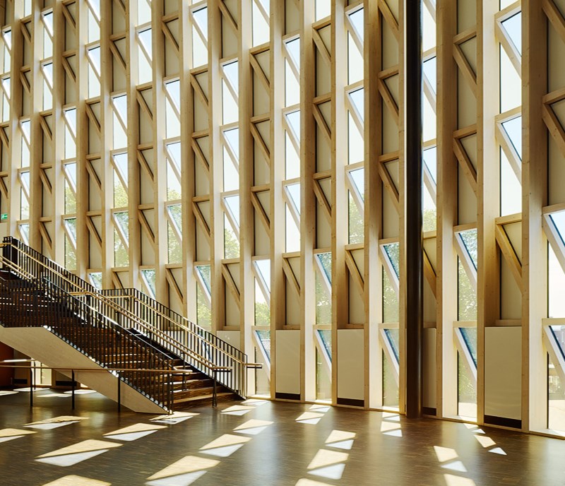 The combination of high strength and low weight goes some way to explain the growing trend we are seeing, whereby wood is used in large structures. Through engineered products such as glulam, solid wood components can be manufactured to span distances of 40 metres. The low weight simplifies transport and installation, which also has a positive financial effect. Nowadays, many in the construction sector are also very keen to use construction materials that have a lower environmental impact, and in this context people are of course increasingly seeing wood as the natural and sustainable option for large public buildings.