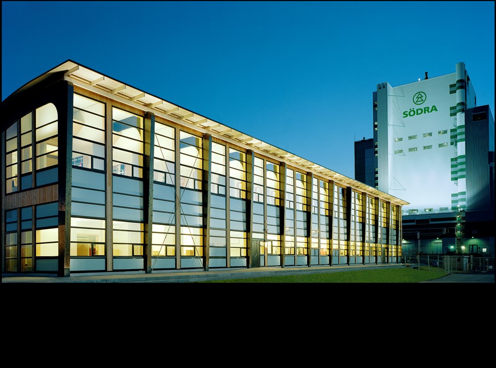 Värö bruk, a center for research and development for Sodra actually consists of two wooden volumes with a glased ceiling between them. By Arkitektbolaget and Skanska.
